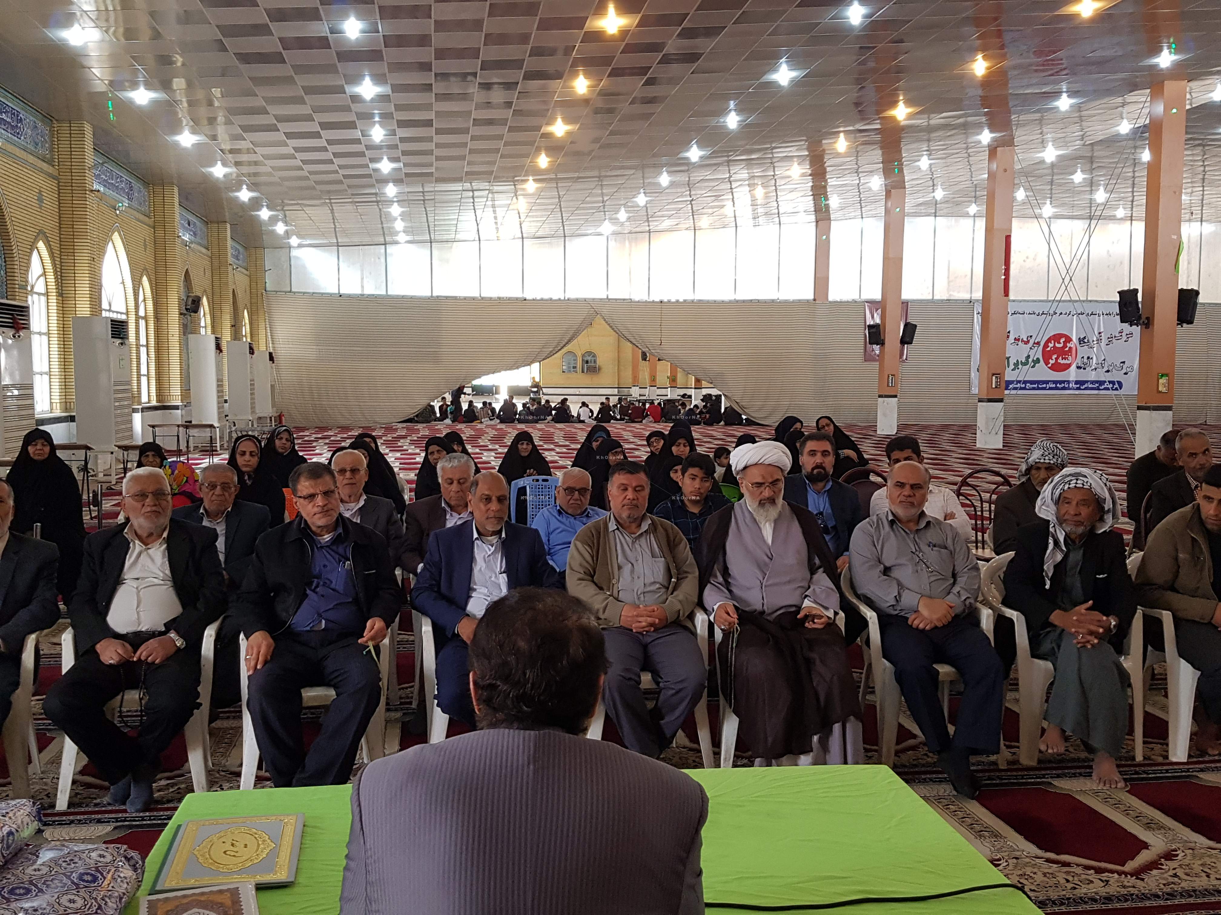 بعداز تلاوت آیاتی از کلام الله مجید سیدخلیل حسینی رییس بنیاد شهید و امور ایثارگران شهرستان بندرماهشهر پشت تریبون قرار گرفت.