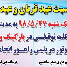 مدیرعامل سازمان مدیریت حمل ونقل شهرداری بندرماهشهر ازترخیص موتورسیکلت های توقیف شده به مناسبت اعیاد قربان وغدیر خبرداد.