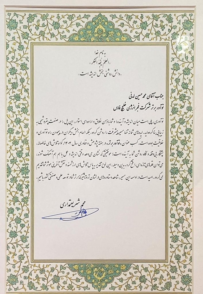به گزارش پایگاه خبری ماهشهر نیوز به نقل از روابط عمومی فجر انرژی خلیج فارس، محمدحسین لدنی، کارشناس مرکز پژوهش و توسعه شرکت فجر انرژی خلیج فارس، در مراسم اختتامیه همایش پتروفن ۱۴۰۴ به عنوان نوآور برتر مورد تقدیر قرار گرفت. طبق اعلام دبیرخانه همایش، انتخاب نوآوران برتر بر اساس شاخصهایی از جمله میزان نوآوری و اثرگذاری طرح در صنعت پتروشیمی، قابلیت بومیسازی، اجراپذیری در مقیاس صنعتی و اثربخشی اقتصادی انجام شده است.